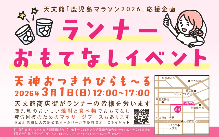 天神おつきや商店街振興組合より、ランナーおもてなしイベントの案内です。